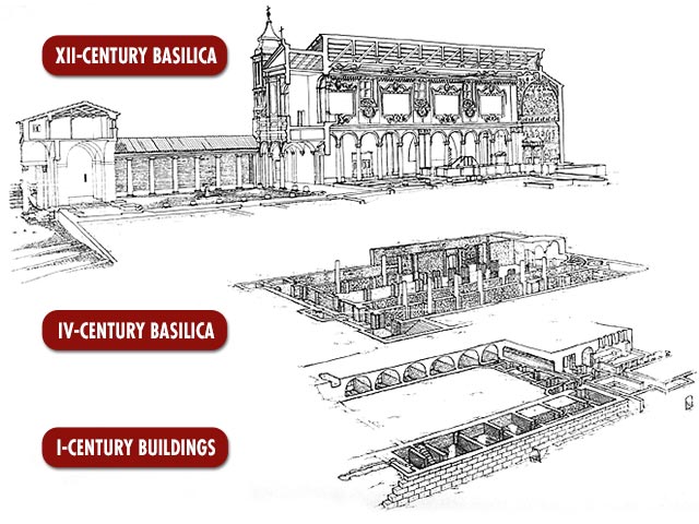 Nykyinen basilika on rakennettu 1100-luvulla. Käytöstä poistetun vanhemman, kolmannen vuosisadan basilikan osia on hyväksikäytetty uudemman rakentamisessa. Näiden alapuolella on sijainnut yksityisasunto sekä Mitran temppeli ensimmäisillä vuosisadoilla.