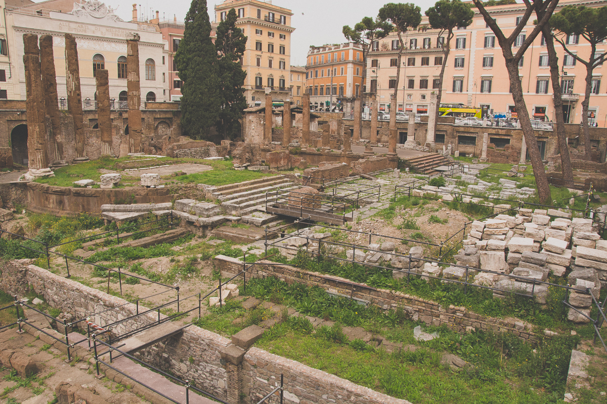 Largo di Torre Argentinalla (suomeksi puhutaan usein ”kissojen aukiosta) ei ole mitään tekemistä Argentiinan kanssa, vaan nimi tulee muinaiselta strasbourgilaiselta kaupungilta nimeltään Argentoratum. Tällä paikalla sijaitsee osa Pompeiuksen teatterin raunioista ja arkeologisten tutkimusten perusteella uskotaan Julius Caesarin saaneen surmansa näillä tonteilla.